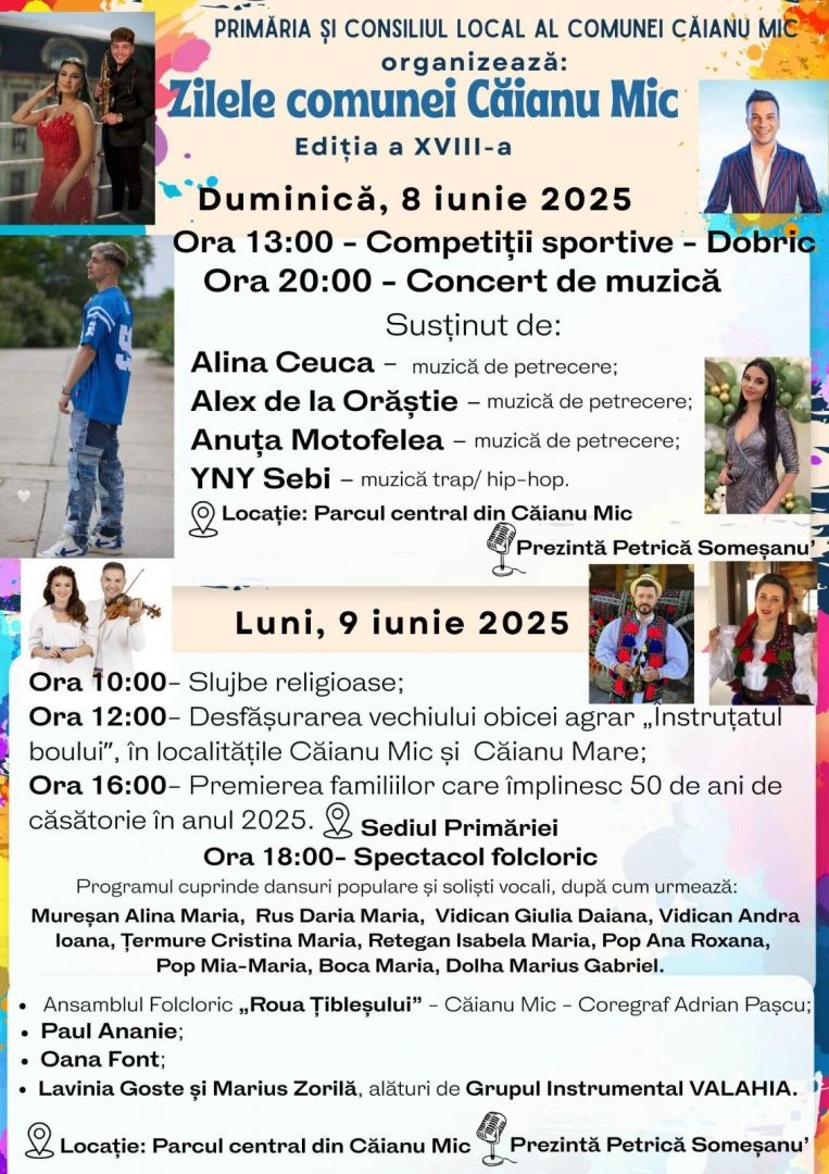ZILELE COMUNEI CĂIANU MIC. Programul complet al evenimentelor