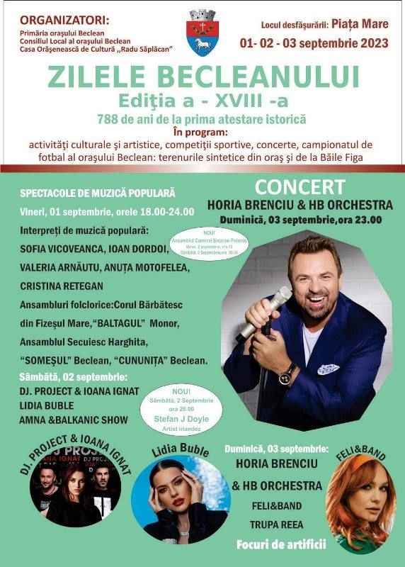 Zilele orașului Beclean, între 1 și 3 septembrie. Horia Brenciu va cânta la eveniment
