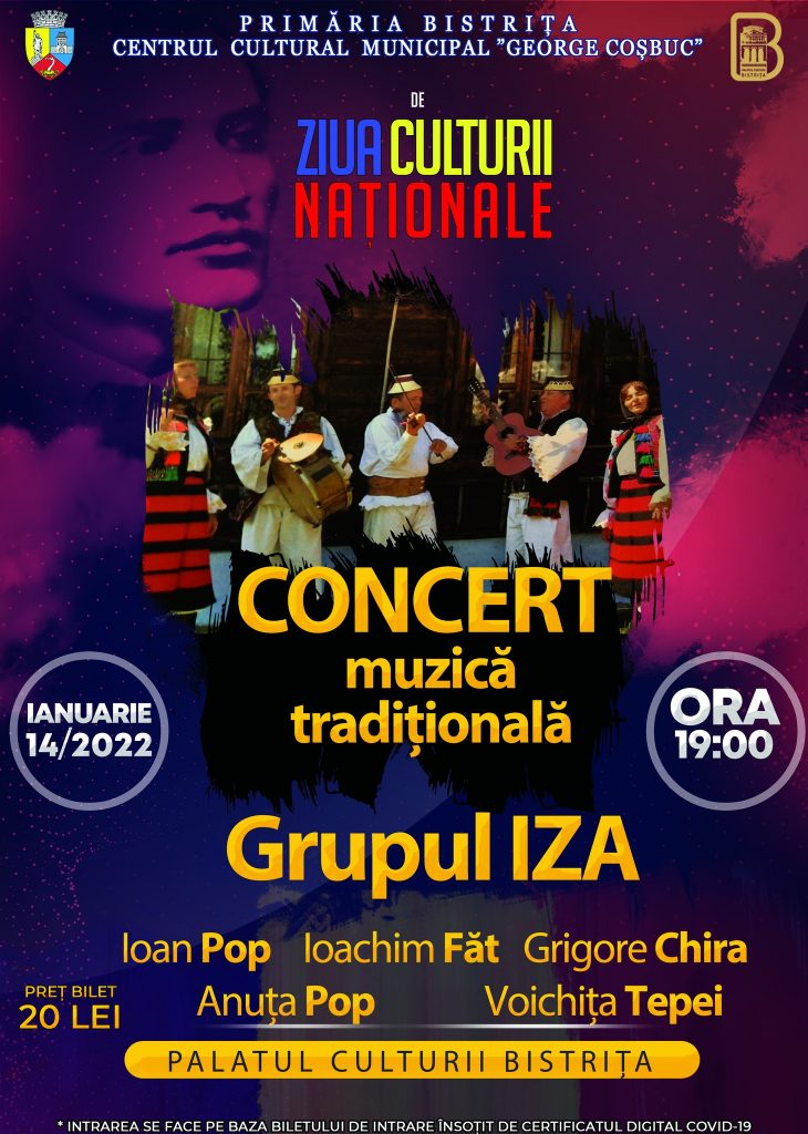 Ziua Culturii Naționale va fi marcată la Bistrița, cu două evenimente importante, la Palatul Culturii. Astfel, în data de 14 ianuare, va avea loc un concert susținut de Grupul Iza.
